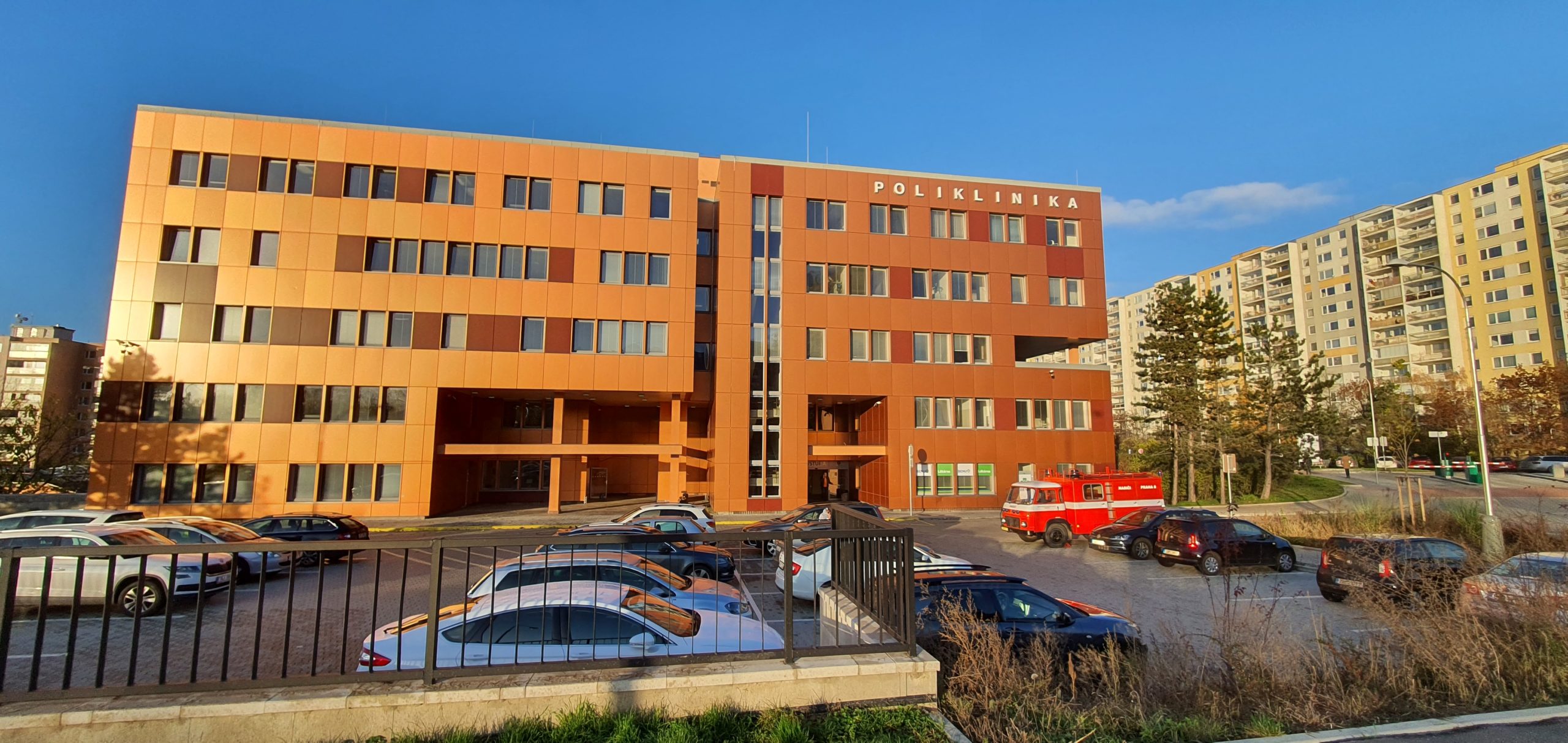 Parkování přímo před poliklinikou za poplatek, v okolních ulicích zdarma.